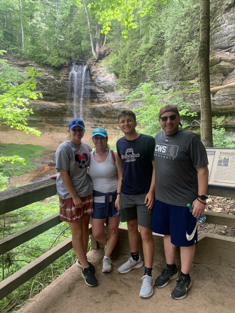 I am now looking at her with a paper ring framing my face, stuck to me with sweat or condensation or who knows what. (I wish I had a picture of myself looking up at her. Don’t think I wasn’t tempted to grab my phone and take a pic of myself, as by now I was mentally writing this blog and trying hard not to forget every funny thing that had happened).